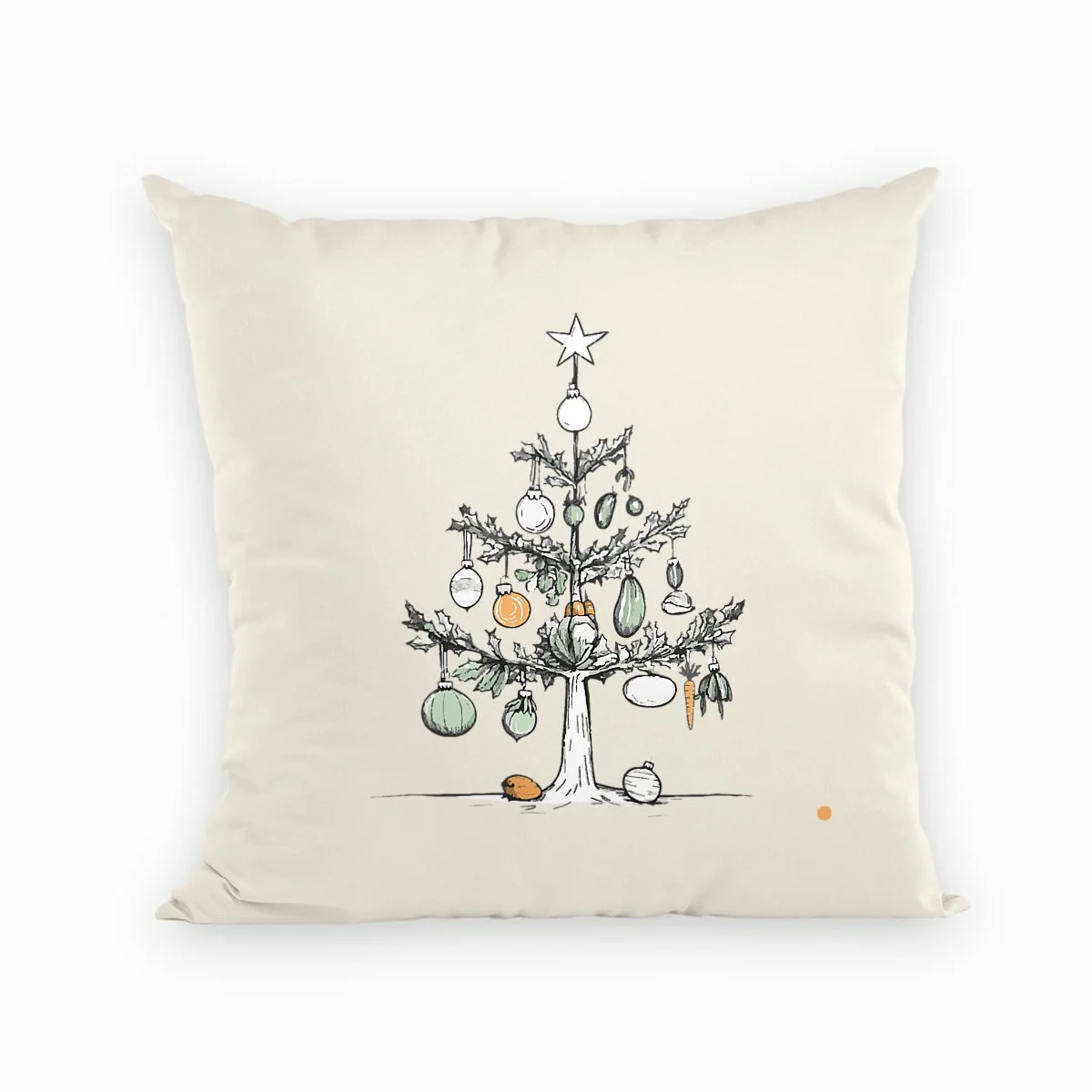 Apportez une touche originale et engagée à votre décoration avec la housse de coussin « Sapin Végétarien ». Son motif ludique d’un sapin décoré de légumes met à l’honneur les fêtes de fin d’année tout en célébrant un mode de vie végétarien et responsable.